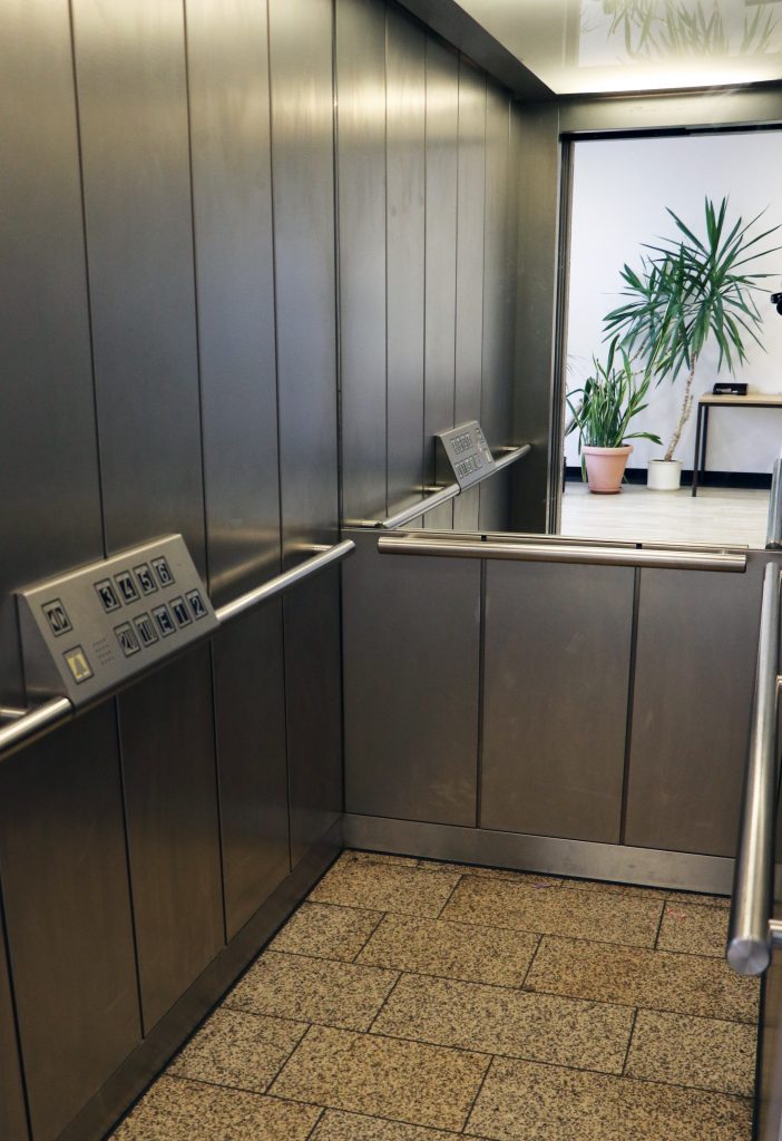 Die Erreichbarkeit unterschiedlicher Geschosse, sollte neben einer Treppe, welche über beidseitig angebrachte Handläufe verfügt, auch über einen Aufzug gewährleistet werden. Vor Treppenabgängen oder -aufgängen sollten sich bei einem taktilen Leitsystem Aufmerksamkeitsfelder befinden. Ebenso hilfreich für Menschen mit Seheinschränkungen ist die kontrastreiche Markierung der Trittstufen an der Vorderkante. Und ist ein Aufzug eigentlich grundsätzlich barrierefrei? Auch hier müssen verschiedene Punkte bedacht werden, wie die Erreichbarkeit von Tasten. Um in einer erreichbaren Höhe für Rollstuhlfahrer zu sein, können Sie sich zum Beispiel auf einem horizontal angebrachten Tableau im Aufzug befinden, mit einer Mindestgröße der Tasten von 5×5 cm. Die Beschriftung sollte entsprechend groß, kontrastreich und tastbar sein. Die akustische Ansage der verschiedenen Stockwerke erleichtert sehbehinderten Menschen zusätzlich die Orientierung. Natürlich ist auch die Mindestgröße eines Fahrstuhlkorbes zu beachten. Und haben Sie sich vielleicht auch schon einmal gefragt, warum die Rückseite eines Fahrstuhles häufig verspiegelt ist? Dieser Spiegel dient keinesfalls dazu, sein Äußeres überprüfen zu können, sondern ermöglicht einem Rollstuhlfahrer der vorwärts in den Fahrstuhl gefahren ist, beim Ausstieg den Blick nach hinten, ohne sich hierfür verrenken zu müssen. Sie sehen: Aufzug ist nicht gleich Aufzug.
